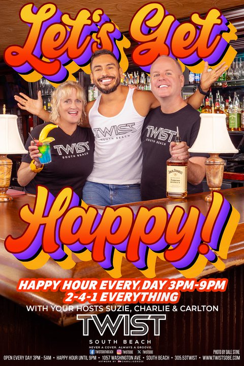 TWIST is the infamous South Beach gay club, known throughout the world for its great music, friendly staff, and always being packed with hot tourists and locals alike. TWIST is actually seven bars in one with each bar having its own unique atmosphere and décor. You can literally "bar hop" without ever leaving this two story club.. Its reputation as a "must do" when in Miami is well deserved.